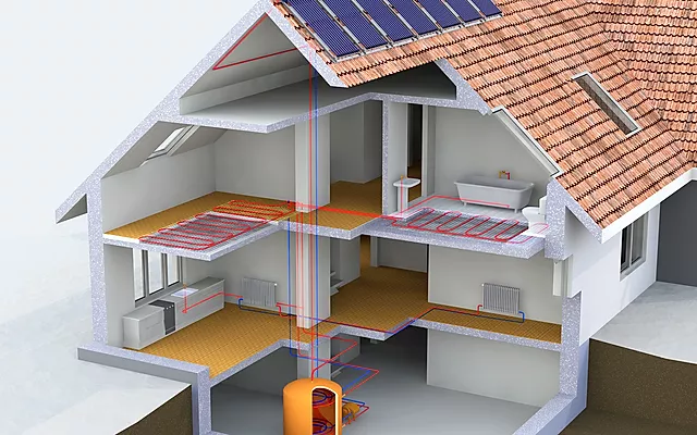 O sistema de piso radiante hidráulico utiliza a água como forma de aquecimento e pode ser utilizado em conjunto com praticamente qualquer fonte de calor, desde uma caldeira padrão até às novas tecnologias sustentáveis, como a energia solar térmica ou as bombas de calor.